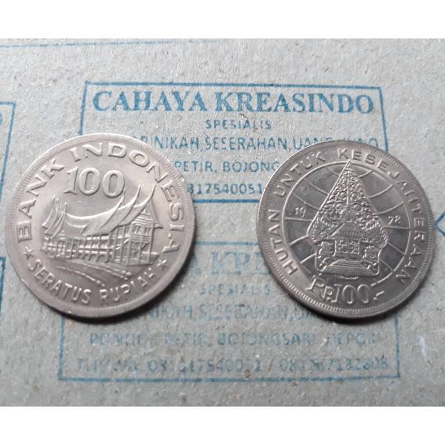 Rp 100 rupiah 1973 rumah gadang tebal uang kuno koin bekas logam duit .